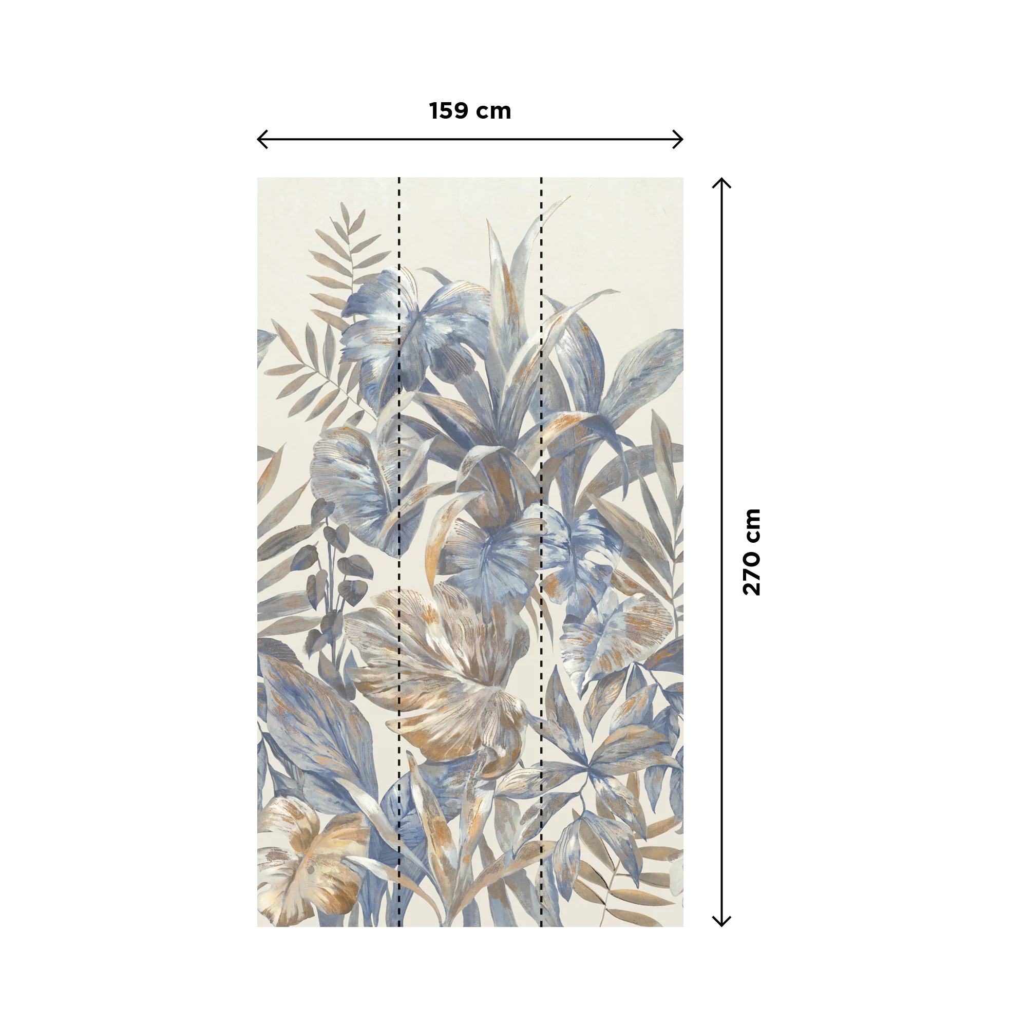 Le décor se compose de 3 lés, formant une fresque de 159 cm de large sur 280 cm de haut. Ce format vertical convient aussi bien aux espaces restreints qu’aux murs plus vastes, en créant une impression de hauteur et de légèreté.