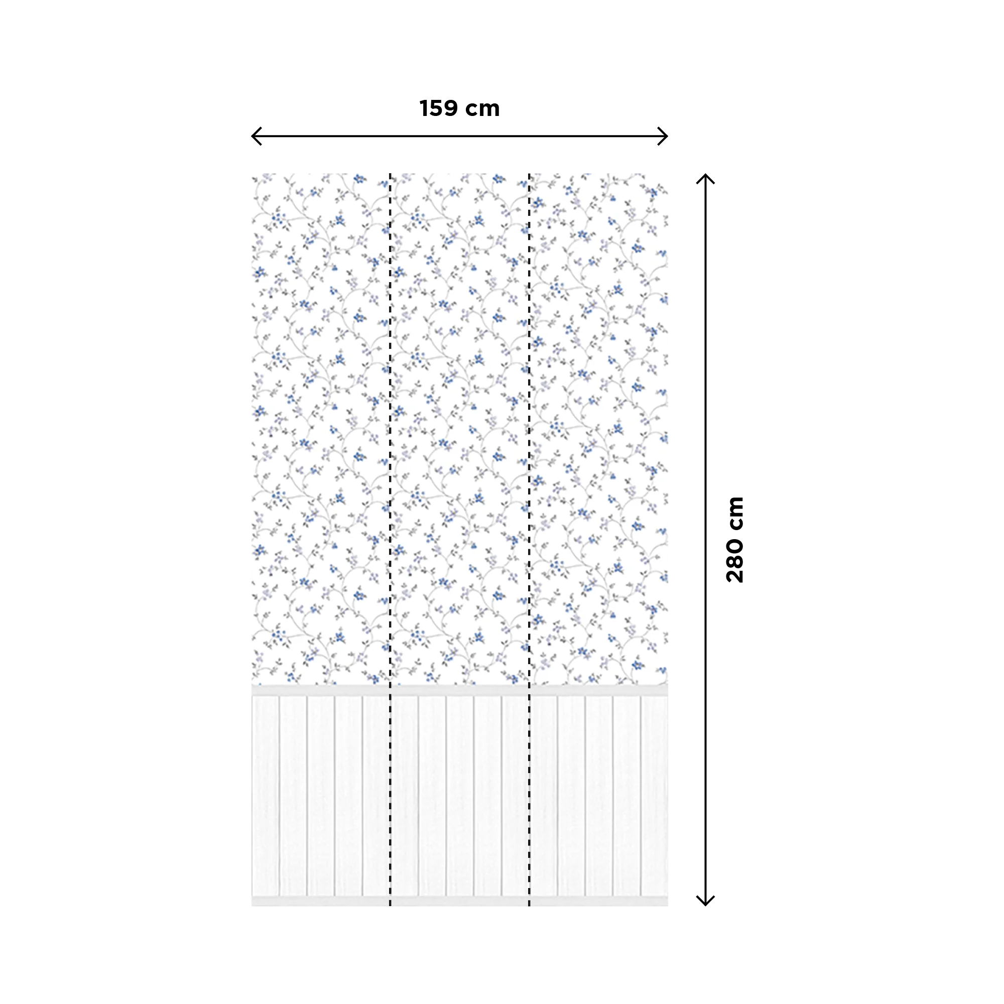 Dans la chambre d'un enfant, le papier peint BETTINA PANEL apportera une ambiance ludique et apaisante. Dans un salon ou une chambre d’adulte, il créera une atmosphère romantique parfaite pour des soirées douces. Optez pour le côté décontracté des fleurs couleur bleu jean et du soubassement blanc. Associez des tons neutres et des accents de denim pour une ambiance bucolique et tendance.