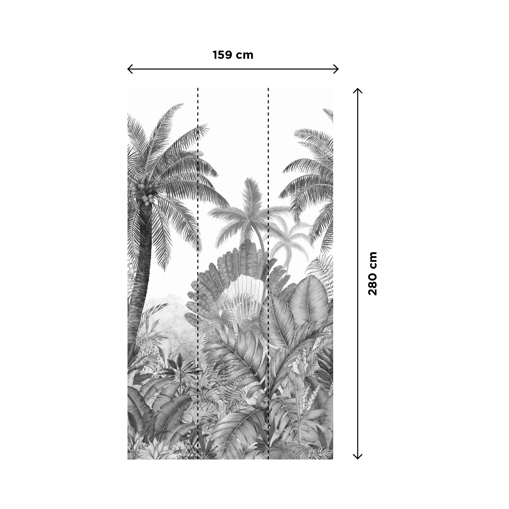 Ce décor se compose de 3 lés, formant un ensemble mural de 159 cm de large sur 280 cm de haut. Ses proportions s’adaptent idéalement à différents espaces, qu’il s’agisse d’un pan de mur unique ou d’un coin lecture.