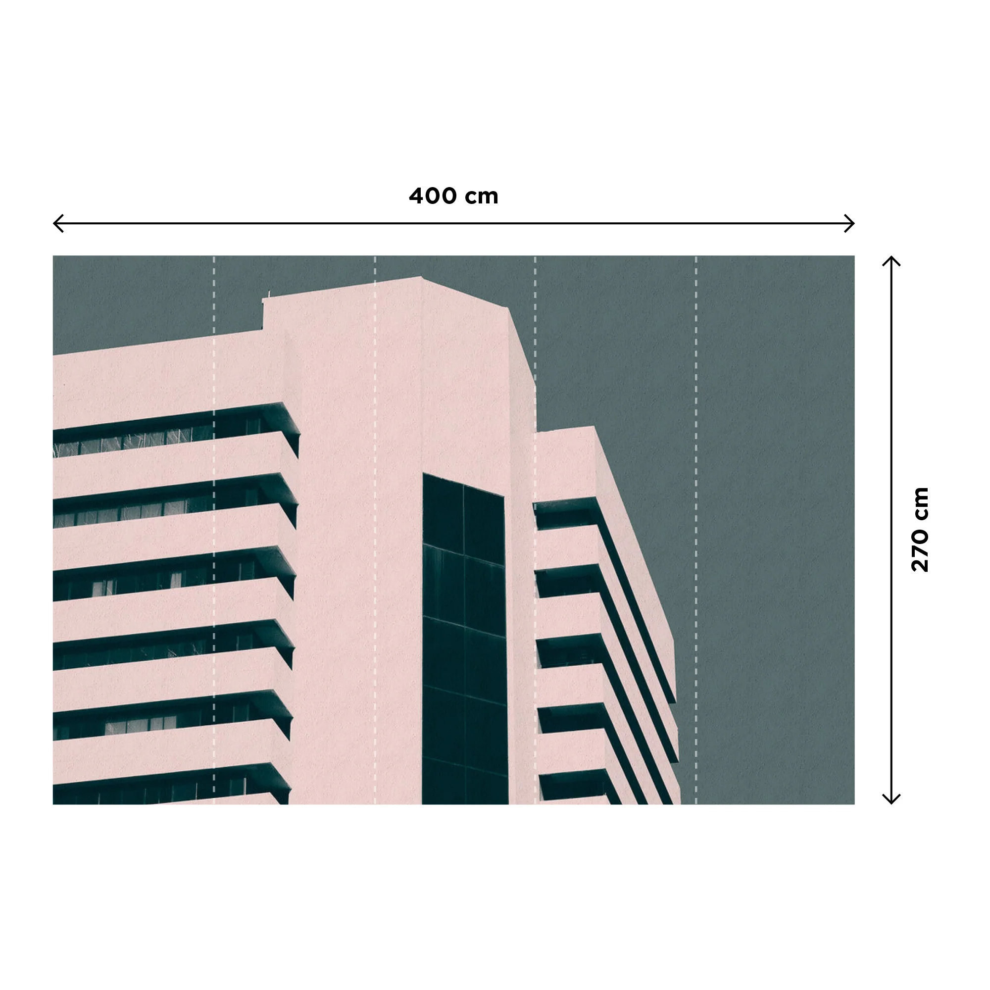 La subtile combinaison de gris et de rose crée à elle seule une ambiance sophistiquée et résolument contemporaine. La façade d'immeuble droite dépeinte sur ce papier peint offre une perspective artistique vraiment particulière.