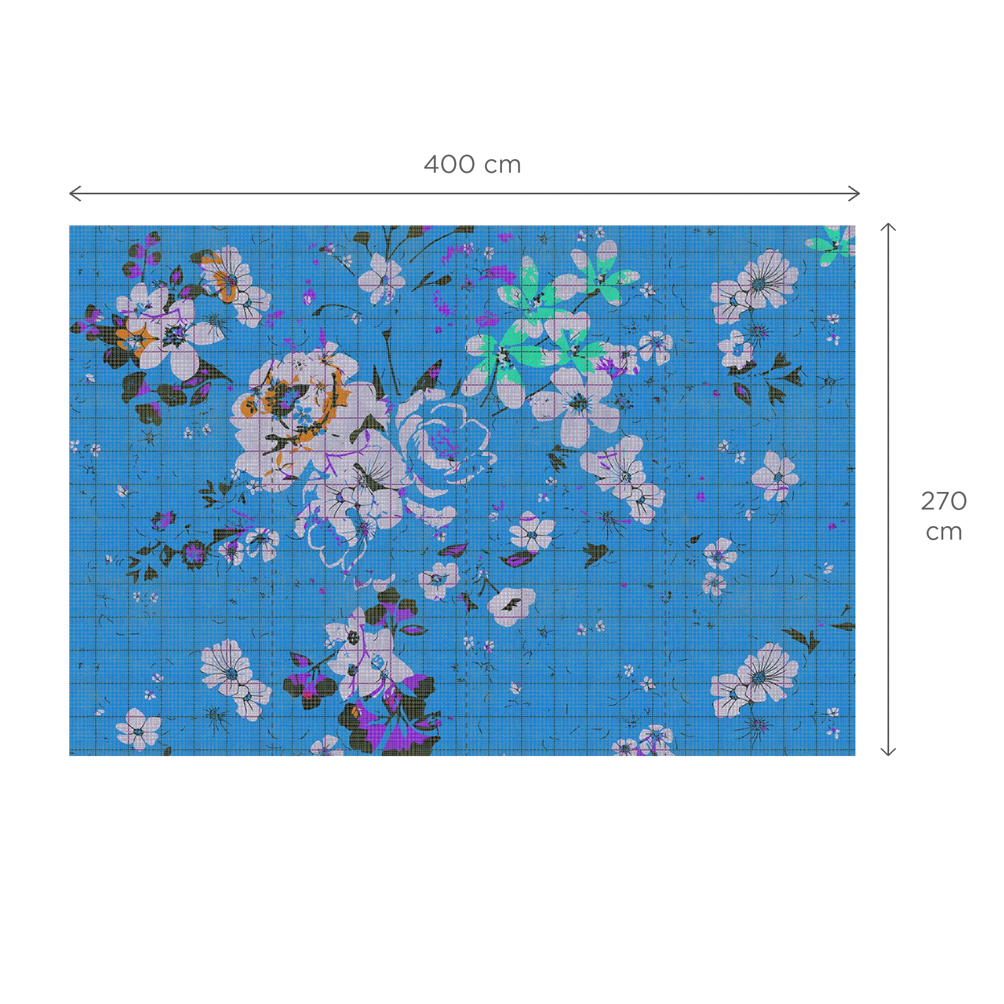 Grâce à son effet carrelage, le revêtement mural panoramique FLAID apporte une originalité indéniable à votre pièce. Les grosses fleurs qui s'épanouissent sur le fond bleu viennent ajouter une touche d'élégance et de fraîcheur.